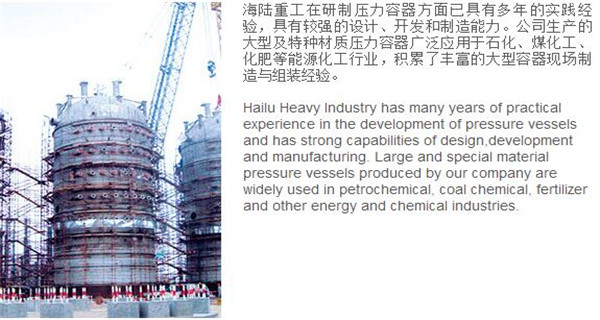 蘇州海陸重工股份有限公司位于江蘇省張家港市開發(fā)區(qū),是國內(nèi)一流的節(jié)能環(huán)保設(shè)備的專業(yè)設(shè)計制造企業(yè),目前并已初步形成鍋爐產(chǎn)品、大型壓力容器、核電設(shè)備、低溫產(chǎn)品、環(huán)保工程共同發(fā)展的業(yè)務(wù)格局。公司創(chuàng)建于1956年,注冊資本51640萬元,占地面積近50萬平米。公司下設(shè)八個控股子公司,一個余熱鍋爐研究所,在瑞士、北京、武漢、南京、上海、杭州、廣州等地設(shè)立分支機構(gòu),擁有雄厚的研發(fā)實力。公司秉承“科技領(lǐng)航、業(yè)界先鋒”的發(fā)展理念,注重研究廢熱、余熱利用和環(huán)境保護相結(jié)合的新技術(shù)研發(fā),自主設(shè)計能力居同行前列;公司承擔(dān)過國家863計劃,江蘇省科技成果轉(zhuǎn)化專項資金,榮獲國家科技進步二等獎,產(chǎn)品擁有核心自主知識產(chǎn)權(quán)并取得專利50多項;公司推行國際先進的管理體系標(biāo)準(zhǔn)和認證,擁有 A級鍋爐制造許可證,A1、A2、A3級壓力容器設(shè)計和制造許可證,取得了民用核承壓設(shè)備制造資格許可證、美國機械工程師學(xué)會(ASME)“S”、“U”鋼印,通過了ISO9001質(zhì)量體系認證、健康體系認證和14000環(huán)境體系認證;公司設(shè)備先進,裝備精良,專業(yè)嚴(yán)謹?shù)闹圃炖砟畲蛟斐銎焚|(zhì)非凡、質(zhì)量一流的“海陸”品牌聲譽。